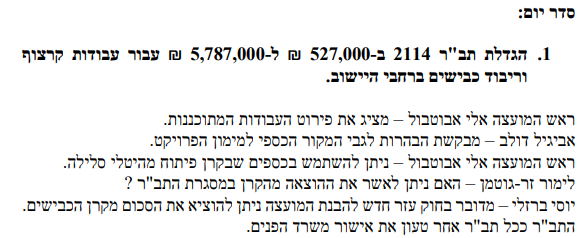 1. למנוע ולעצור מהמועצה שימוש לא תקין ולא חוקי בכספי קרנות הפיתוח לטובת פעילות שוטפת ולדרוש מהנהלת המועצה להציג מקור מימון חוקי קרי תקציב שוטף, ע"י תיקון תקציב 2024 או להטמיע בתקציב 2025.