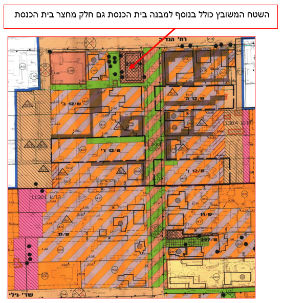 מצרפת נתונים רלוונטי מתוכנית ש/12ג בה מוגדר אתר בית הכנסת אוהל יעקב הכולל גם את שטח המבנה וגם את חצר בית הכנסת הסמוכה אליו