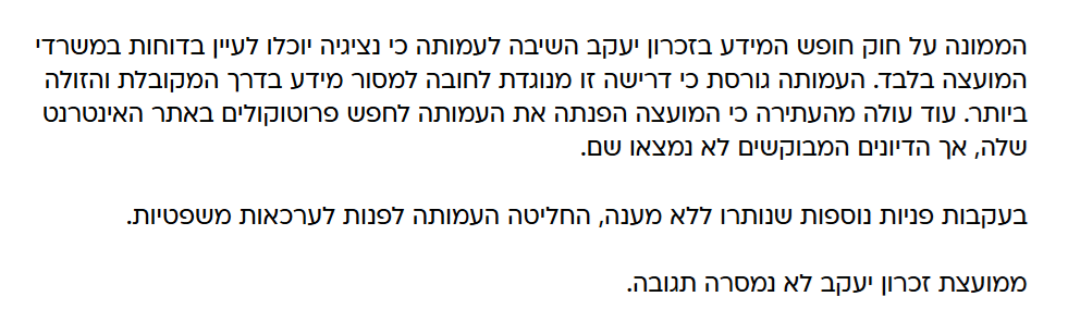 נושא שלישי: עתירה נוספת הוגשה נגד המועצה בגין חוסר שקיפות והפעם באתר המועצה.