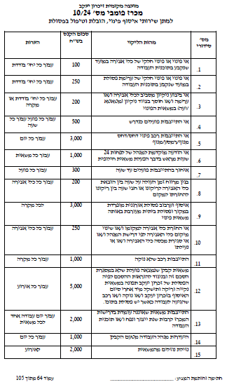 מצורף דוגמה לעיצומים/קנסות בגין אי עמידה בסעיפי החוזה כפי שפורסם במכרז עמודים 64 עד 67