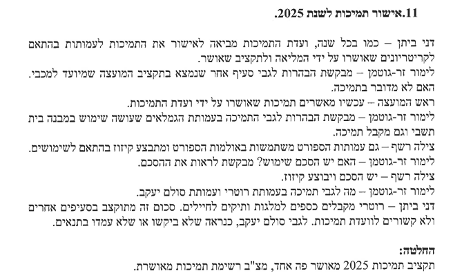 ישיבת מליאה 1.7.2025 סעיף אישור תמיכות