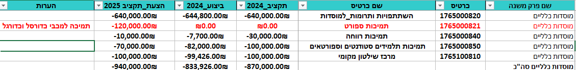 פרוט סעיפי תקציב 2025 ( סעיפים רלוונטיים)